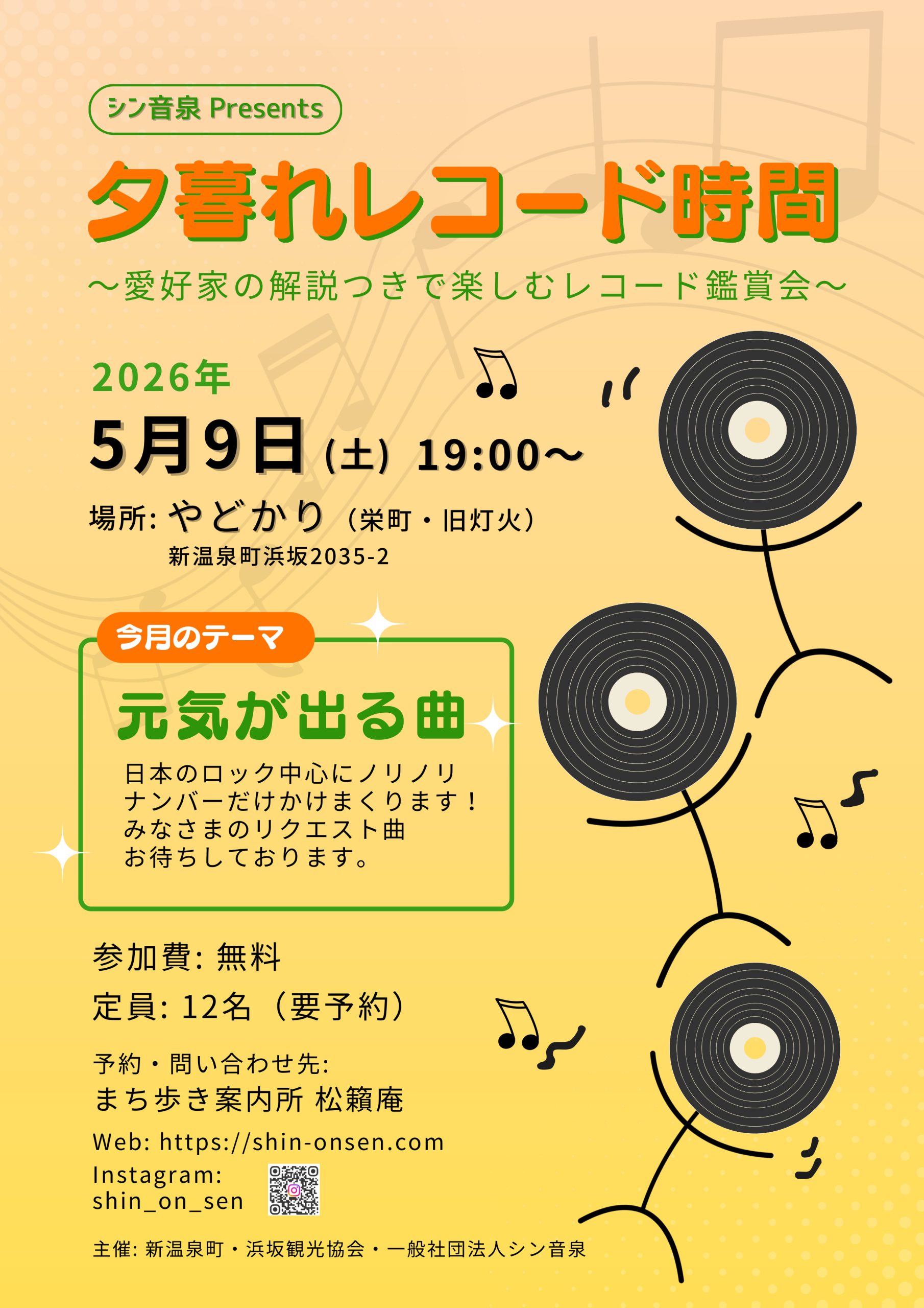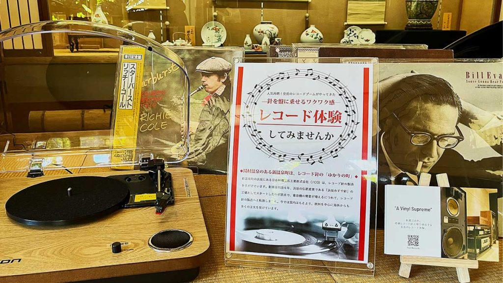 「昭和の町並みでレコードを聴く」体験会や観光客や地域住民向けに、特別な場所での音楽体験を開催しています。 風情のある温泉街に位置する旅館「佳泉郷・井づつや」、「湯けむりの宿・朝野家」、「御宿コトブキ」、「湧泉の宿 ゆあむ」、「大江戸温泉物語 三好屋」、「緑屋」では、ロビーやラウンジにレコードプレーヤーが設置されており、レコードでお客さまをおもてなしされています。この他「蕎麦ろあん湯村」「リフレッシュパークゆむら」「gensen space TOJI」でもお楽しみ頂けます。旅先のゆっくりと流れる時間の中で聴くレコードは格別です。